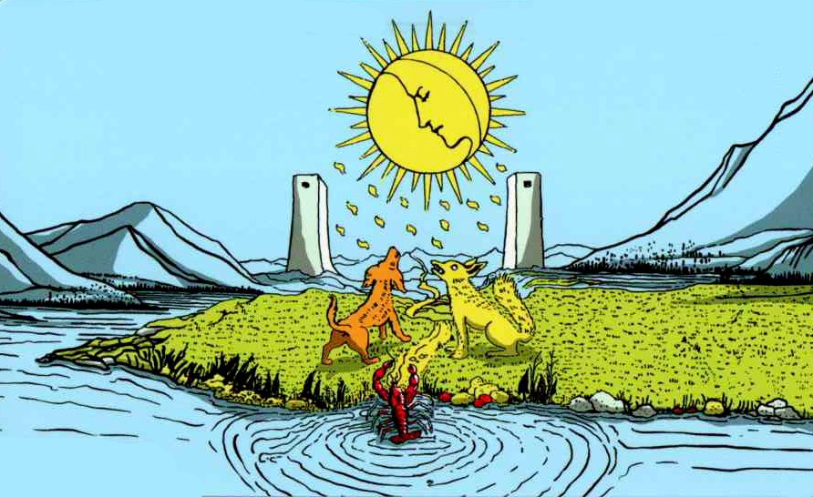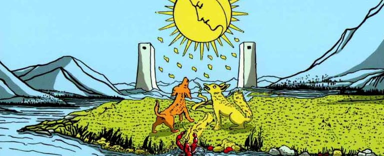 En la carta de La Luna del Tarot Rider-Waite Smith, observamos un eclipse lunar, un evento que ocurre cuando la Tierra se interpone entre el Sol y la Luna, privando a esta última de su luz. Las culturas ancestrales solían temer estos eventos, interpretándolos como un abandono divino. De hecho, la palabra "eclipse" significa precisamente eso: abandono. Por esta razón, esta carta se asocia con el miedo, la incertidumbre y la confusión.